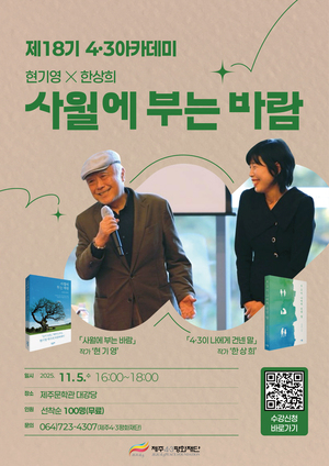 제주4‧3평화재단은 오는 11월 5일(수), 11월 8일(토) 양일간 제주문학관 대강당에서 제주4‧3을 주제로 한 문학인 초청 북토크를 연다. 이번 행사는 4‧3의 역사와 문학의 만남을 통해 ‘기억’의 메시지를 전하고자 마련된 것으로, 선착순 100명까지 시민 누구나 무료로 참여할 수 있다.11월 5일(수) 오후 4시부터 6시까지 진행되는 은 제주를 대표하는 작가 현기영 소설가와 젊은 세대의 시선으로 4‧3을 탐구해온 한상희 작가가 함께 진행한다.현기영 작가는 소설 『순이삼촌』을 통해 제주4‧3을 한국 사회에 알