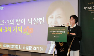 제주특별자치도는 13일부터 14일까지 제주썬호텔에서 ‘제주4・3기록물 세계기록유산 등재와 4·3의 세계화’를 주제로 ‘제15회 제주4·3평화포럼’이 개최됐다고 밝혔다.제주4·3평화재단이 주최·주관한 이번 포럼은 제주4·3기록물이 세계기록유산으로 등재된 후 그 의미를 짚어보고 4·3세계화를 위한 과제를 점검하는 국제 학술대회로 마련됐다.13일 기조강연에는 1999년 4·3 수형인명부를 최초로 공개하며 진상규명에 기여한 추미애 국회 법제사법위원장이 나섰다.추미애 위원장은 ‘제주4·3 진실규명의 의미’를 주제로, “제주 4·3 해결의 가