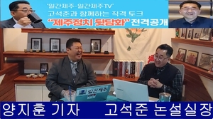 고석준 ‘제주 정치뒷담화’+한동수 ‘이슈한방 콜라보 방송...2026년 6월 5일 진행제주 대표적 인터넷신문 ‘일간제주’와 영상 시사전문채널 ‘일간제주 TV’가 이번에 야심찬 프로젝트로 제주는 물론 중앙정치를 두루 다뤄보는 토크 프로그램을 만들었다.이번 프로젝트 프로그램의 이름은 오랜 기간 동안 개혁을 추구하는 진보정당에서 활발히 활동하면서 앞에서보다 뒤에서 진보 정치인들에게 힘을 보태주는 역할을 하는 고석준 더불어민주당 중앙당 대외협력위원회 부위원장과 함께하는 [고석준과 함께하는 직격 토크 “제주정치 뒷담화”]다.언제나 긍정적이면