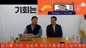 일간제주 + 일간제주TV’ 시사토크프로그램 “김승욱의 제주정치 通(통)”...2025년 10월 2일 제6화 5부 방송제주 대표적 인터넷신문 ‘일간제주’와 영상 시사전문채널 ‘일간제주 TV’가 이번에 야심찬 프로젝트로 제주지역 지역 산적한 현안과 정치적 이슈, 그리고 국내 정치 현안을 두루 다루는 토크 프로그램을 만들었다.이번 야심차게 준비한 ‘일간제주’프로젝트 시사 프로그램인 ‘일간제주 + 일간제주TV’ 시사토크 프로그램 “김승욱의 제주정치 通(통)”은 지난 2024년 7월 18일 국민의힘 제주도당 수장을 맡게 됐으며, 그리고 올해
